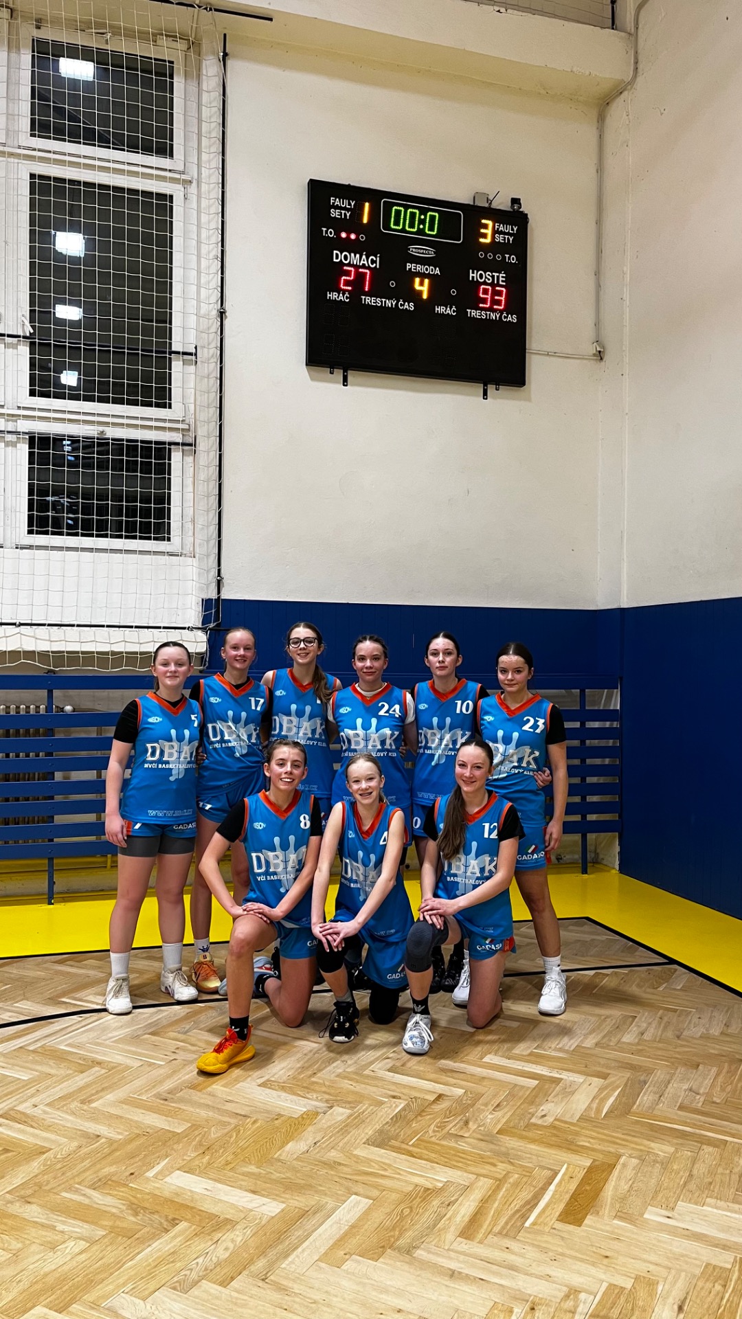 zápas. Tento zápas toho byl jasným důkazem. Byli jsme samozřejmě limitováni úzkou rotací, kde se tato situace v průběhu zápasu neustále zhoršovala. První zranění přišlo už v první čtvrtině a bohužel nebylo poslední! Další bohužel navíc přineslo dlouhodobé zranění. Takže dohrávání v sedmi lidech se projevilo na odskoku soupeře z vyrovnaného skóre v posledních minutách, kde jsme fyzicky odpadli a dostali několik jednoduchých košů. Ale abych přešel zpět do pozitivního hodnocení. Bylo pozitivní, jak často jsme v soutěži U15 dostávali pod tlak driblujicí soupeřky, jak relativně snadno jsme překonávali jejich zón-press a byli schopni dát střely ze střední vzdálenosti. Měli bychom si udržet zkušenost, že proti výrazně vyšším hráčkám nedává smysl atakovat zabetonovanou bednu, ale zkusit situaci řešit napíchnutím obrany, shozením, následnou otevřenou střelou a důrazným doskokem. V každém případě, respekt sedmi statečným za dobojování zápasu!"